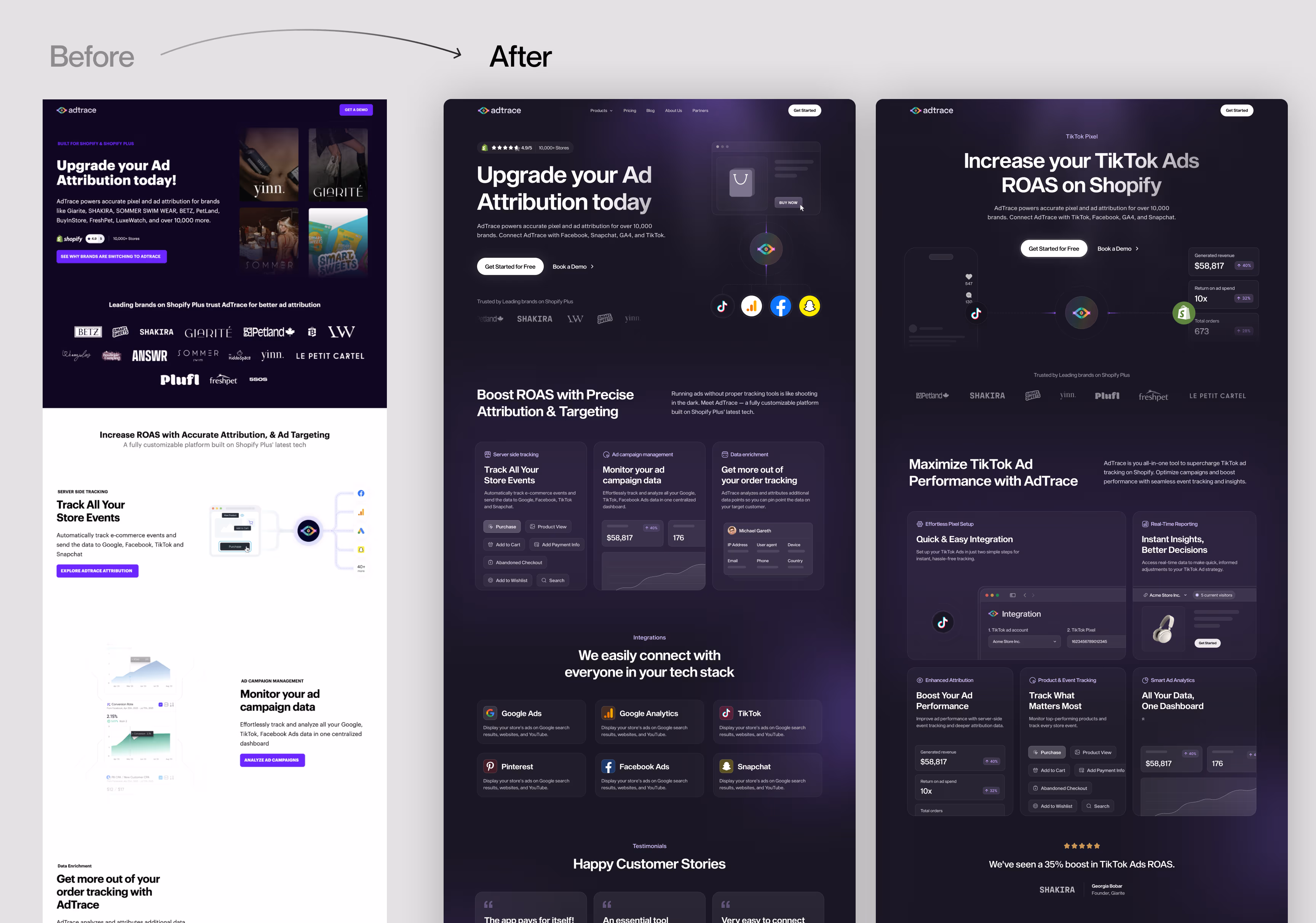 AdTrace, an ad attribution startup, approached me to clarify and strengthen its brand presence. In just four weeks, we launched a new website and supporting marketing materials, leading to a significant increase in sign-ups within a few months.